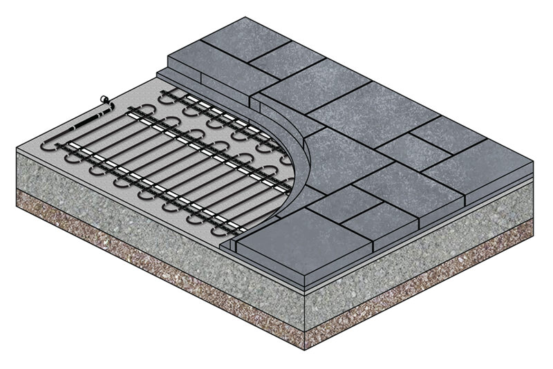 Installs under concrete, asphalt and interlocking bricks.
